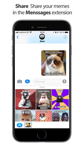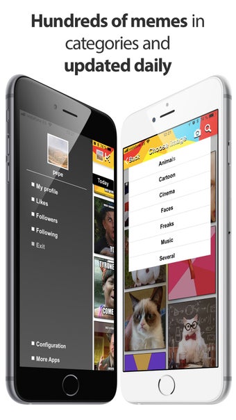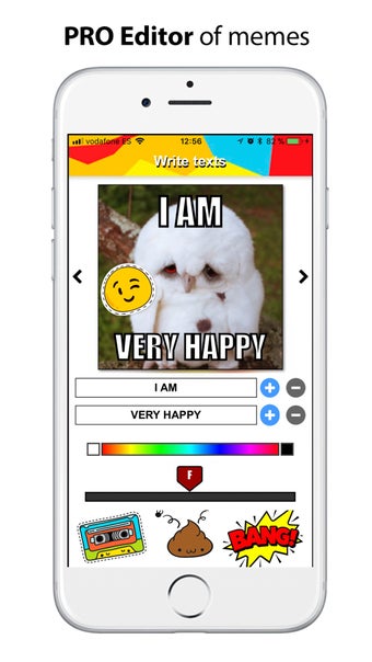 これには、カメラ、フォトエディター、テキストエディター、およびテンプレートが必要です。このアプリには、ミームを作成するための組み込みテンプレートが含まれています。